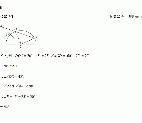 如图,半圆是一个量角器, 为一纸片, 交半圆于点, 交半圆于点,若点、、在量角器上对应读数分别为, , , 的度数为( ).