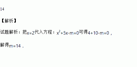 关于x的方程x2+5x–m=0的一个根是2,则m=__________.
