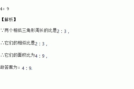 如果两个相似三角形周长的比是2:3,那么它们面积的比是________ .