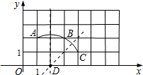 如图,在平面直角坐标系中,过格点A,B,C作一圆弧,[