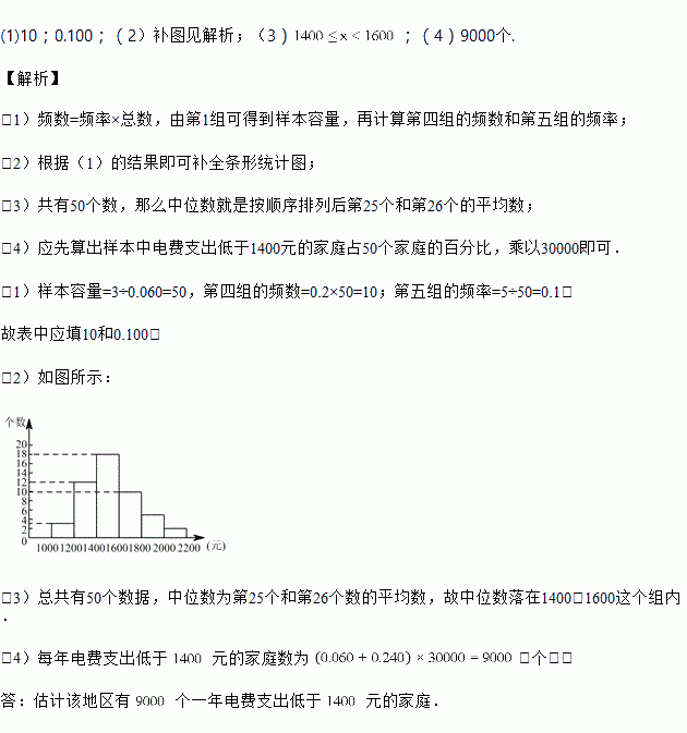 (4)若该城区有 万个家庭,请你估计该城区有多少个一年电费支出低于 ![]()
