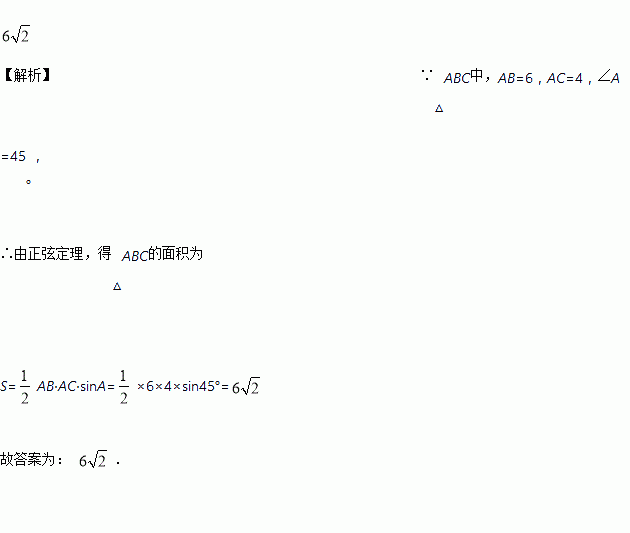 在△ABC中,AB=6,AC=4,∠A=45°,则△ABC的面积为________.