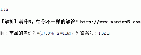 某商品进价为a元,商店将价格提高30%作零售价销售,这时一件商品的售价为________.