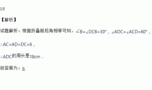如图,将一张直角三角形纸片对折,使点B、C重合,折痕为DE,连接DC,若AC=6cm,∠ACB=90°,∠B=30°,则△ADC的周长是_____cm.