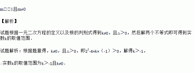 已知关于x的一元二次方程mx2+2x﹣1=0有两个不相等的实数根,则m的取值范围是_____________
