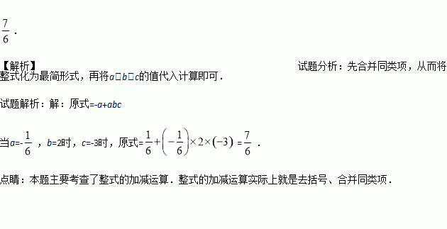 先化简再求值:2a+abc﹣c2-3a+c2 ,其中a=-,b=2,c=﹣3.