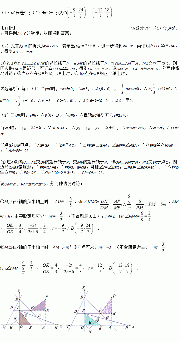 (2)点D为线段BC上一动点,过点D作x轴平行线分别交OB、AB于点E、F,点G为AF中点,直线EG交x轴于H,设点D的横坐标为t,线段AH长为d(d≠0),求d与t之间的函数关系式;