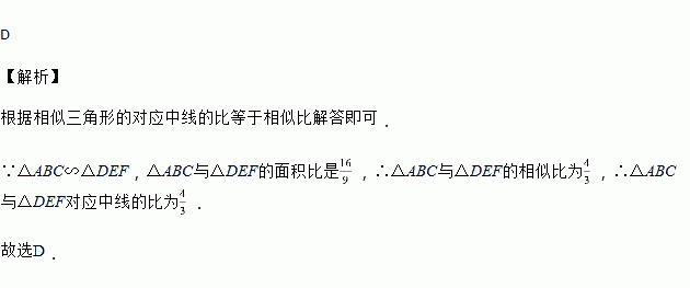 已知∽,若与的面积比是,则与对应中线的比为