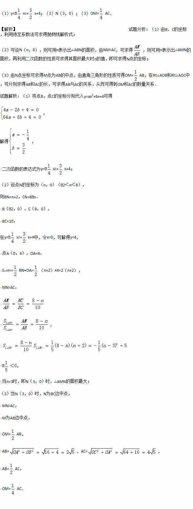 (2)连接AC,AB,若点N在线段BC上运动(不与点B,C重合),过点N作NM∥AC,交AB于点M,当△AMN面积最大时,求N点的坐标;