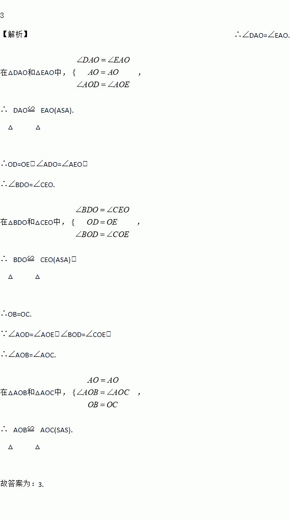 如图,OA平分∠BAC,∠AOD=∠AOE,则图中的全等三角形共有__对.