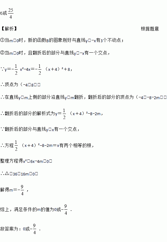 x2-4x在直线y=m上侧的部分沿直线 y=m翻折,翻折后的部分与没有翻折的部分组成新的函数图像,若新的函数图像刚好与 直线y=-x有3个交点,则满足条件的m 的值为_________