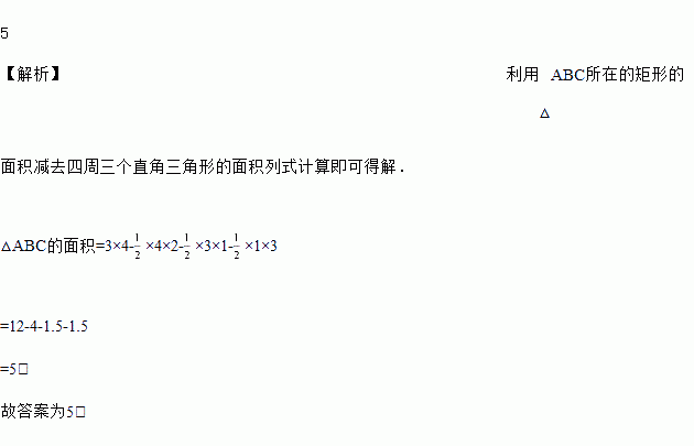 如图,在△ABC中,A,B两点的坐标分别为A(-1,3),B(-2,0), C(2,2),则△ABC的面积是________ .