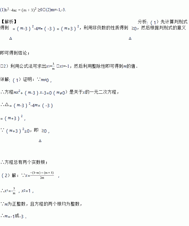 已知关于x的方程mx2+(3﹣m)x﹣3=0(m为实数,m≠0).