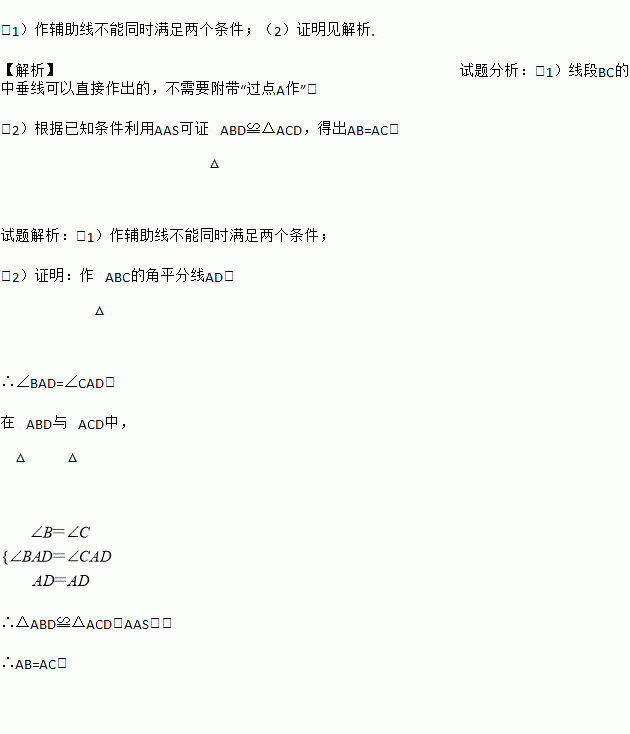 文文:“过点A作BC的中垂线AD,垂足为D”;