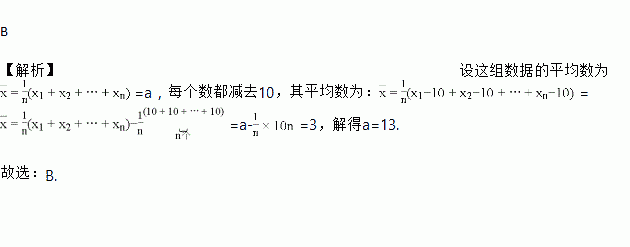 将一组数中的每一个数减去10,所得到的新一组数据的平均数为3,则原来那组数据的平均数为( )