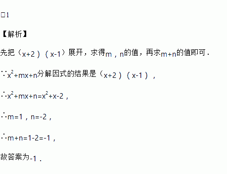 若x2+mx+n分解因式的结果是(x+2)(x﹣1),则m+n的值为_____.