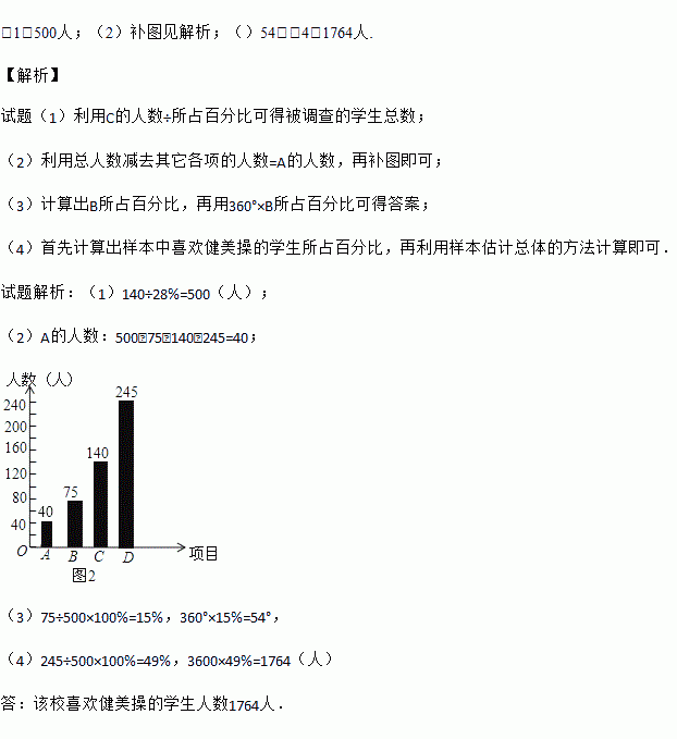 (4)¼ºÖª¸ÃУ¹²ÓÐѧÉú3600ÈË£¬Çë¸ù¾Ýµ÷²é½á¹û¹À¼Æ¸ÃУϲ»¶½¡ÃÀ²ÙµÄѧÉúÈËÊý£®