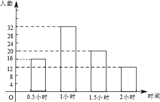 (2)利用总人数乘以百分比即可求得时间是0.5小时的一组的人数,即可作出直方图;