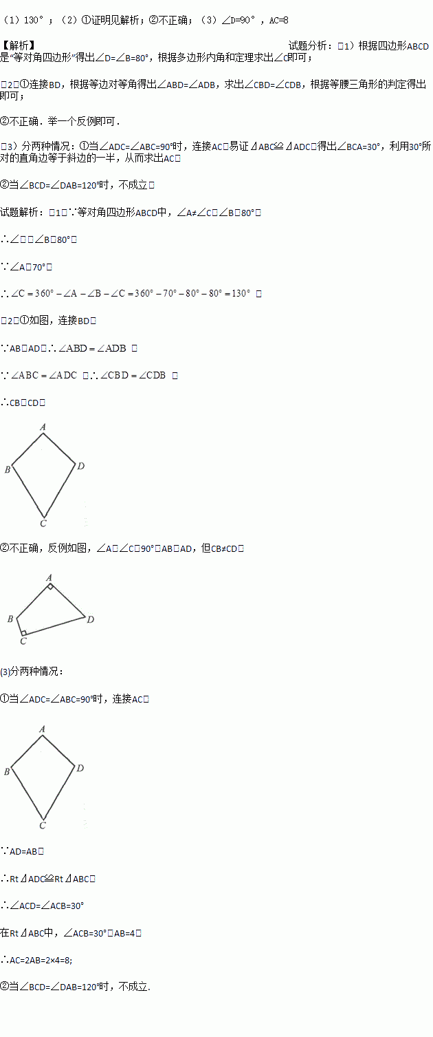 ¢Ú ÓÉ´ËСºì²ÂÏ룺¡°¶ÔÓÚÈÎÒâ¡®µÈ¶Ô½ÇËıßÐΡ¯£¬µ±Ò»×éÁÚ±ßÏàµÈʱ£¬ÁíÒ»×éÁÚ±ßÒ²ÏàµÈ¡±£®ÄãÈÏΪËýµÄ²ÂÏëÕýÈ·Âð£¿ÈôÕýÈ·£¬ÇëÖ¤Ã÷£»Èô²»ÕýÈ·£¬Çë¾Ù³ö·´Àý£®