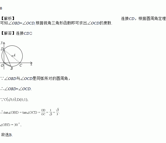 如图,过点,,,点是轴下方上的一点,连接,,则的度数是( )