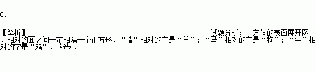 中国讲究五谷丰登,六畜兴旺,如图2是一个正方体展开图,图中的六个正方形内分别标有六畜:“猪”、“牛”、“羊”、“马”、“鸡”、“狗”.将其围成一个正方体后,则与“牛”相对的是( )