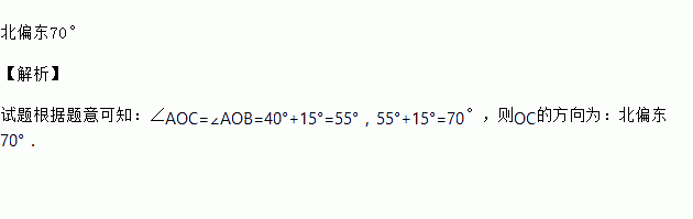 如图,OA的方向是北偏东15°,OB的方向是北偏西40°,若∠AOC=∠AOB,则OC的方向是_____.