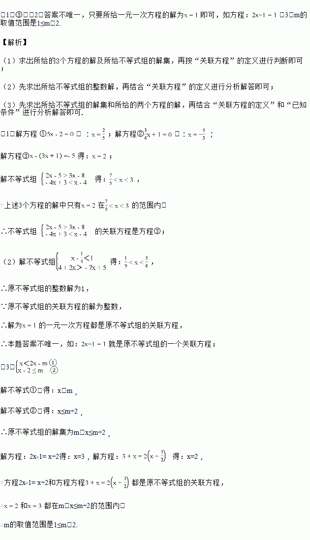 如果一元一次方程的解也是一元一次不等式组的解,则称该一元一次方程为该不等式组的关联方程.