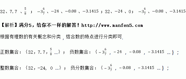 正数集合:{ …}; 负数集合:{ …};