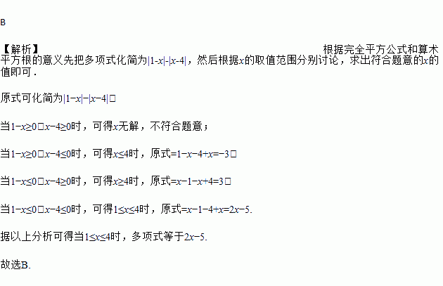 A. x为任意实数 B. 1≤x≤4 C. x≥1 D. x≤1