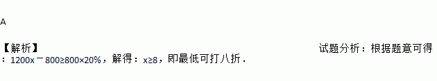 某种商品的进价为800元,标价为1200元,由于该商品积压,商店准备打折销售,但要保证利润率不低于20%,则最低可打( )