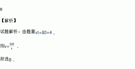 一司机驾驶汽车从甲地去乙地,他以平均80千米/小时的速度用了4个小时到达乙地,当他按原路匀速返回时.汽车的速度v千米/小时与时间t小时的函数关系是( )