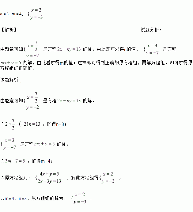 甲、乙两名同学在解方程组时,甲解题时看错了m,解得 ;乙解题时看错了n,解得.请你以上两种结果,求出原方程组的正确解.