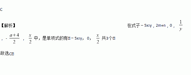 C 【解析】在式子﹣5x2y,2m+n,0, ,﹣, 中,是单项式的有:﹣5x2y, 0, 共3个, 故选C.