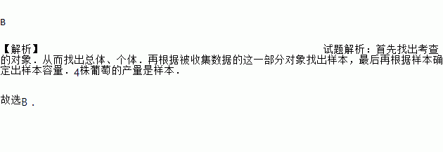 某新品种葡萄试验基地种植了10亩新品种葡萄,为了解这些新品种葡萄的单株产量,从中随机抽查了4株葡萄,在这个统计工作中,4株葡萄的产量是( )