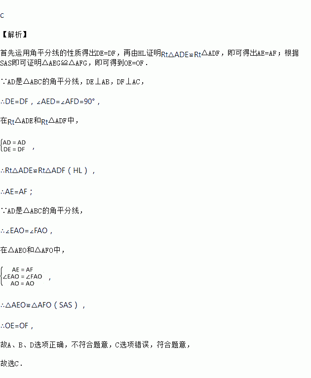 如图,AD是的角平分线,,,垂足分别为点E、点F,连接EF与AD相交于点O,下列结论不一定成立的是