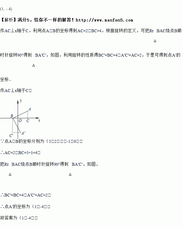 如图,在平面直角坐标系中,点、的坐标分别为、,若将线段绕点顺时针旋转得到线段,则点的坐标为________.