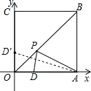 分析:作出D关于OB的对称点D′,则D′的坐标是(0,2).则PD+PA的最小值就是AD′的长,利用勾股定理即可求解.