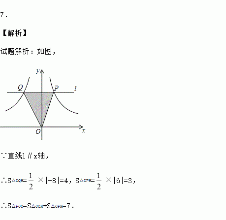 如图,在平面直角坐标系中,直线l∥x轴,且直线l分别与反比例函数y=(x>0)和y=-(x<0)的图象交于点P、Q,连结PO、QO,则△POQ的面积为 .