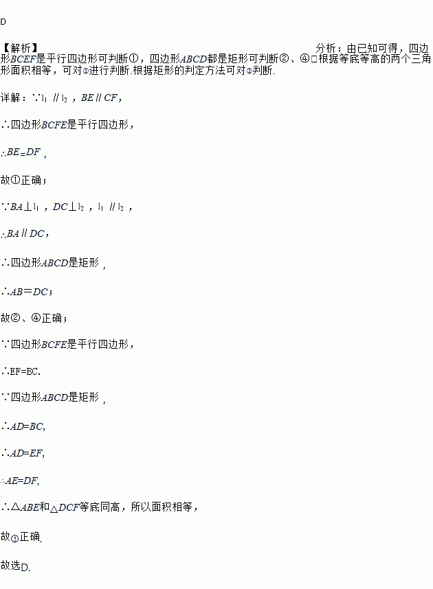,下面给出四个结论:①BE=CF;②AB=DC;③