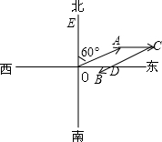 8.一艘船从O处出发,沿北偏东60°方向行驶至A,然后向正东方向行驶至C后又改变航向,朝与出发时相反的方向行驶至B.请画出该船的航线示意图,并求∠ACB的度数.分析 画出示意图,利用平行四边形的性质即可解答.