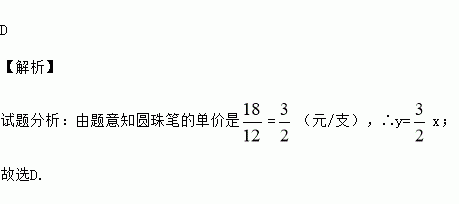 如果每盒圆珠笔有12支,售价18元,用y(元)表示圆珠笔的售价,x表示圆珠笔的支数,那么y与x之间的关系应该是( )