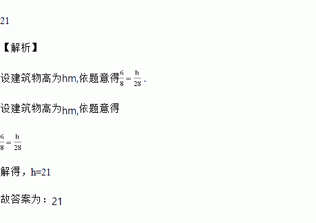 高6cm的旗杆在水平面上的影长为8cm,此时测得一建筑物的影长为28cm,则该建筑物的高为______.
