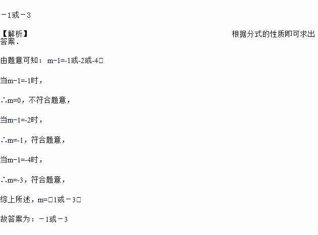 分式的值是整数,负整数m的值为_______.