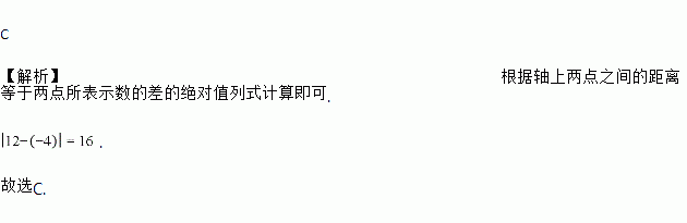 数轴上表示数12和表示数﹣4的两点之间的距离是( )