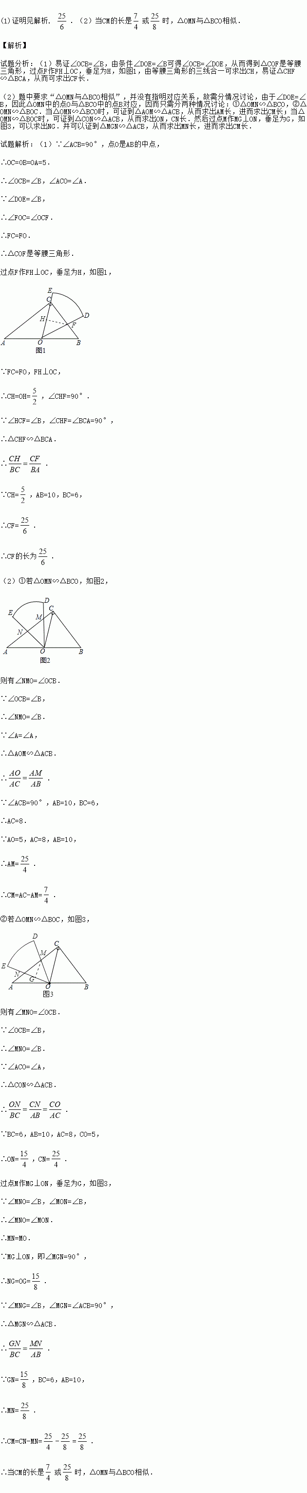 (2)将扇形纸片DOE绕点O逆时针旋转,OD,OE与边AC分别交于点M,N(如图2),当CM的长是多少时,△OMN与△BCO相似?