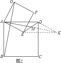 (2)将图1中的正方形AEFG绕A点逆时针旋转α(0°<α<90°)角时,如图2,则(1)中的结论是否仍成立?试证明你的结论;