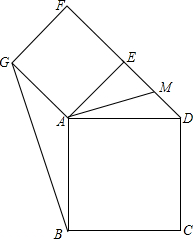 分析:(1)可证明△ABG≌△ADE,BG=DE,又AM是△ADE的斜边上中线,所以AM=