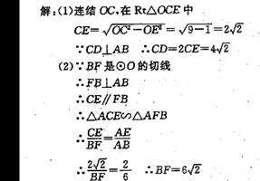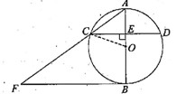 如图,AB是⊙O的直径,弦CD⊥AB于点E,过点B作⊙O的切线,交AC的延长线于点F。已知OA=3,AE=2,