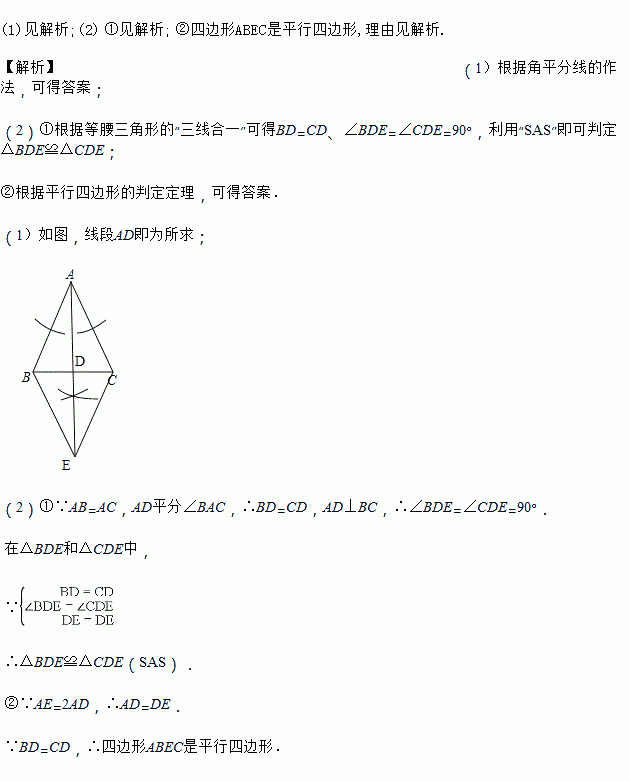 ②当AE=2AD时,四边形ABEC是平行四边形吗?请说明理由.