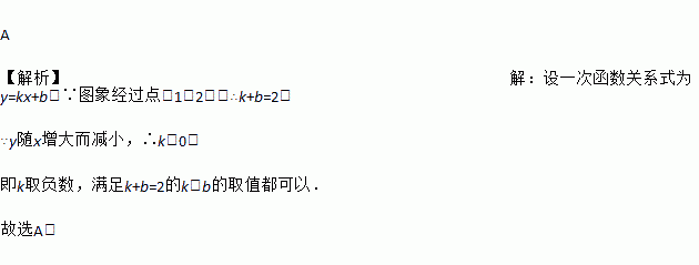 某一次函数的图象经过点(1,2),且y随x的增大而减小,则这个函数的表达式可能是